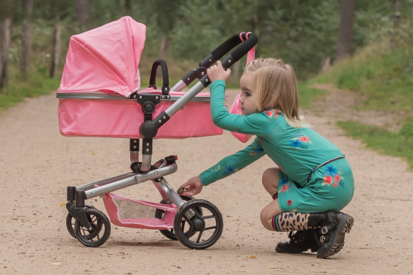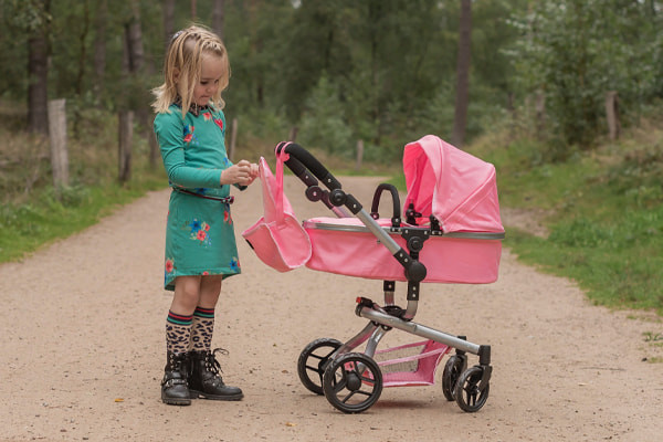 De 2in1 poppenwagen van Bandits & Angels in het roze: de Classic Angel softpink. Deze wagen kan zowel als wandelwagen als buggy worden gebruikt. Voor poppen tot 50 cm. De poppenwagen groeit mee met poppenmoeders vanaf 2 jaar dankzij de verstelbare duwstang (48-81 cm). De Classic Angel 2in1 is voorzien van geluidsarme zwenkwielen en een boodschappenmandje. Ook zit er een bijpassende luiertas bij!