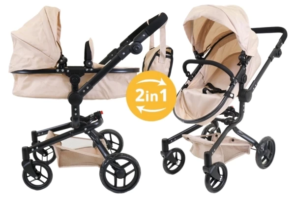 Complete poppenwagen. Erg leuk dat deze wagen zowel te gebruiken is als wandelwagen en als buggy. Lijkt net echt!
