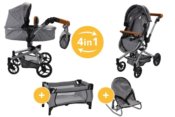 De Bandits & Angels Pink Angel 4in1 megapack biedt u alles wat u zoekt voor uw babypop. Met deze set heeft u de beschiking over een poppenwagen, buggy, babybedje en wippertje. Deze set is een echte must have voor jonge poppenmoeders vanaf 3 jaar.