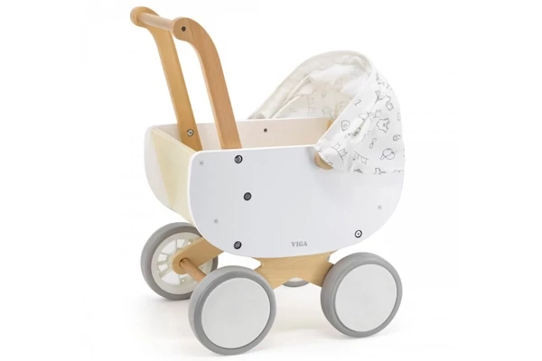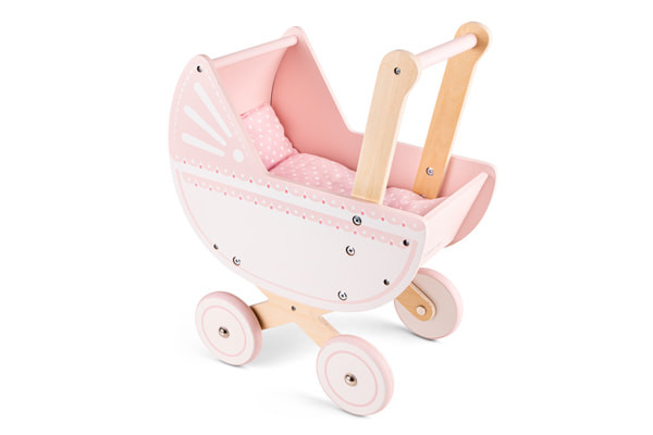De poppenwagens van New Classic Toys zijn voorzien van vier houten wielen. Deze zijn omrand met rubber. Hierdoor zijn de wagentjes geluidsarm en kan er probleemloos binnen in huis worden gereden. Maar er kan ook buiten mee worden gereden.