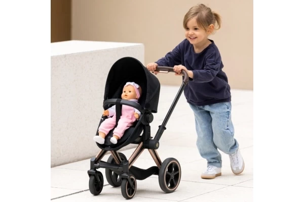Stijlvol op stap met uw pop en deze multifunctionele poppenwagen! De Cybex 3in1 kan eenvoudig in een buggy worden omgetoverd. En de bak kan als losse reiswieg worden gebruikt. Voorzien van een inklapbare zonnekap. De vaste duwstang is 64,5 cm hoog. De zwenkwielen zorgen voor een korte draaicirkel. Onderin vindt u een handig boodschappenmandje. Het frame is inklapbaar. Geschikt voor poppen van 36-42 cm.