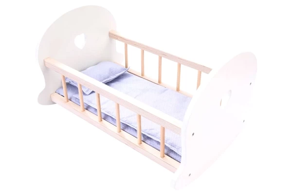 Is het al etenstijd? Schuif uw lievelingspop er gezellig bij! Met deze handige eetstoel kunt u de pop makkelijk te eten geven. De houten poppenstoel is stabiel en heeft een afmeting van 36x30x56,5 cm. De pop zal heerlijk comfortabel zitten dankzij het grijze zitkussentje in de stoel. Wat staat er vandaag op het menu? De poppenstoel is geschikt voor kinderen vanaf 3 jaar.